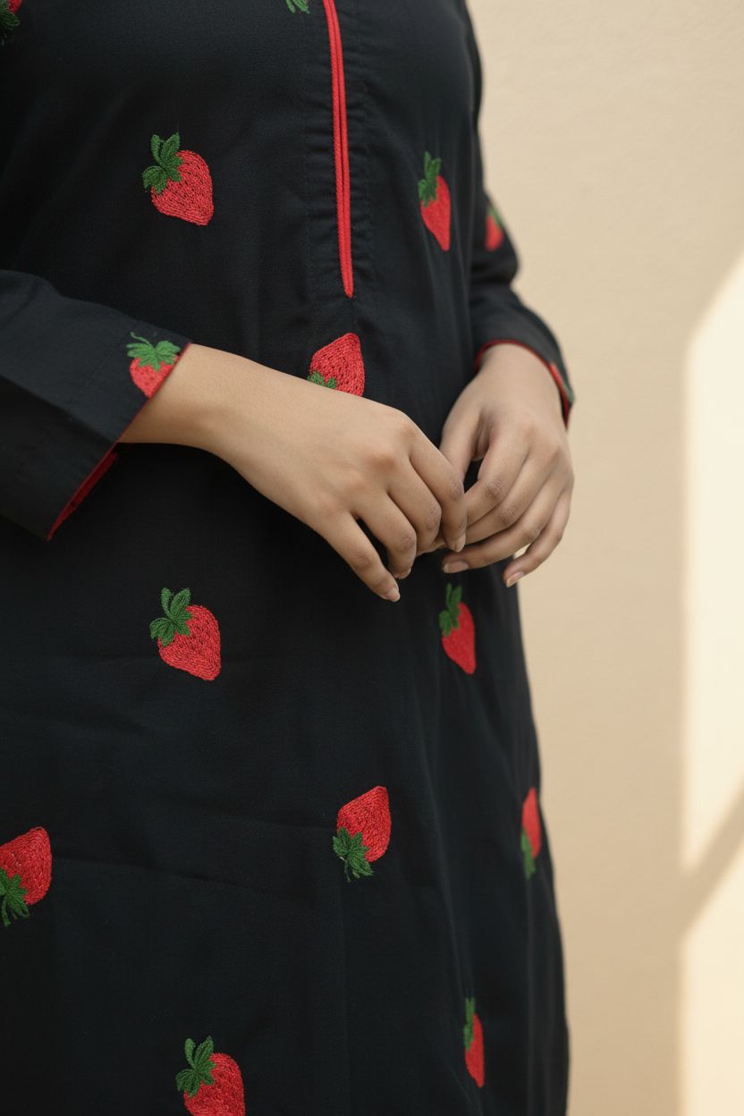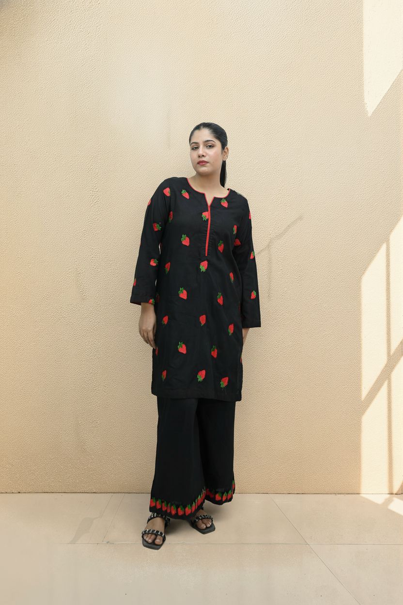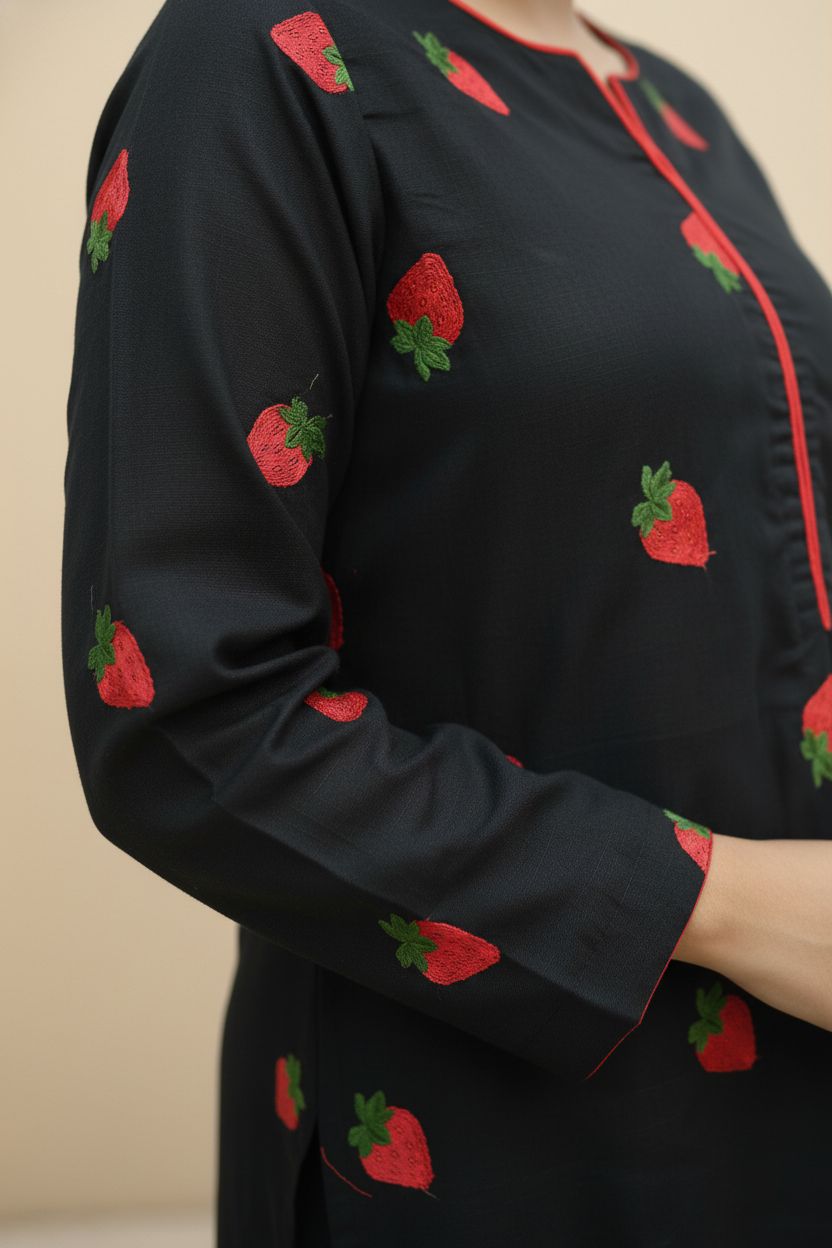 A striking ready-to-wear 3-piece dress crafted from pure cotton silk fabric, designed to deliver a perfect balance of elegance and comfort. This beautiful black outfit features a computer-embroidered shirt that adds intricate detailing and a premium finish to the overall look.