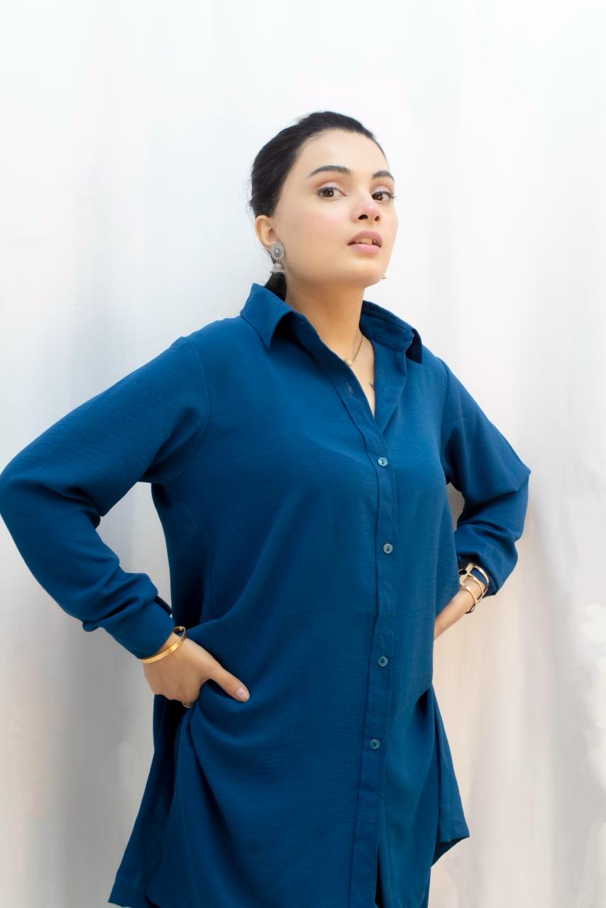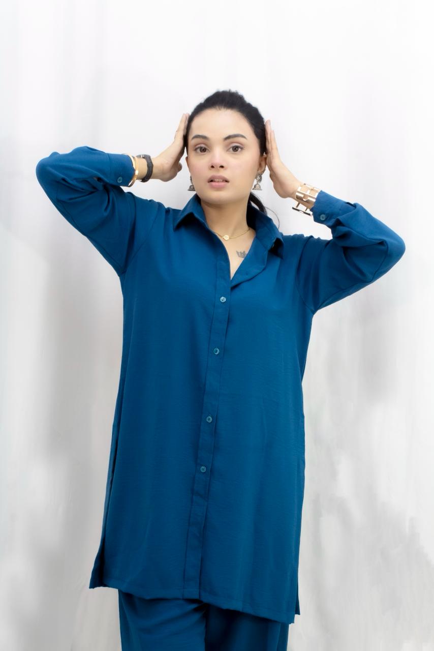 A sleek and stylish ready-to-wear 2-piece co-ord set designed for modern, effortless fashion. Crafted from plain marble georgette fabric, this outfit offers a soft flow and graceful drape, giving you a refined yet comfortable look.